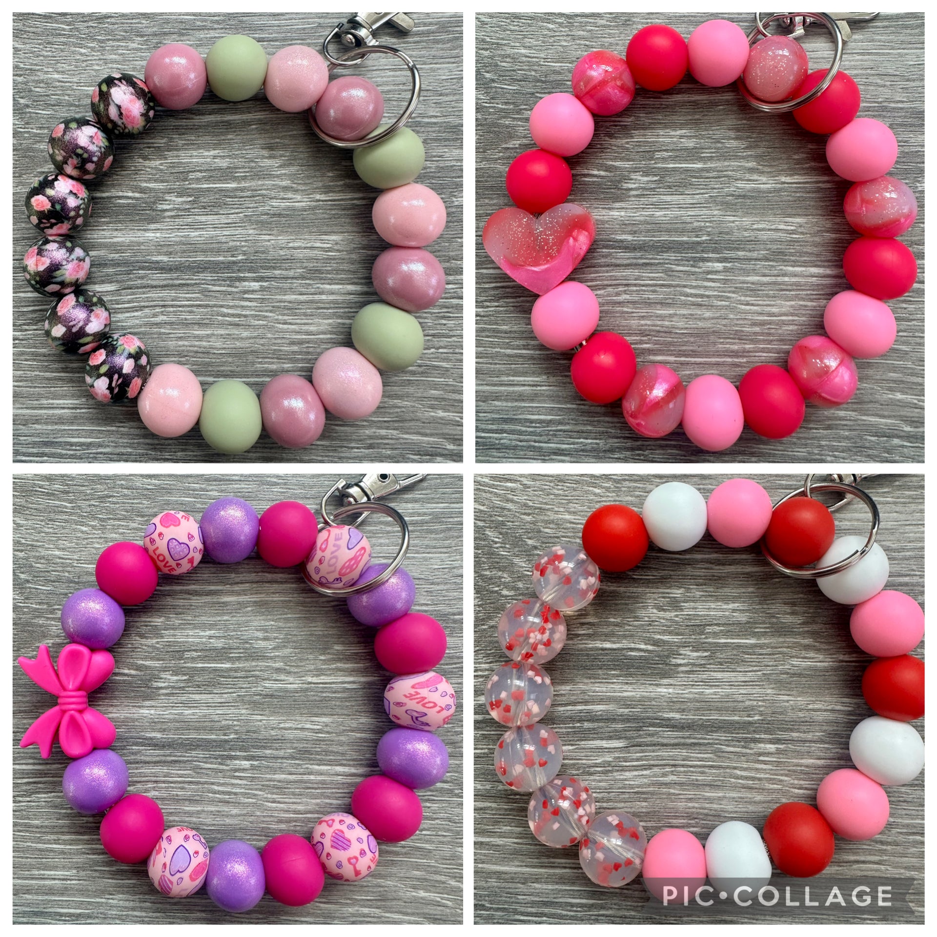 wristlet keychains are made with silicone beads and a metal cord, color coordinating tassel can be purchased separately